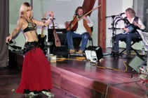 Begleitet wird er von PETRA KALLEY (dharbuka, daf, udu, riqq, cajon, voc, bass), die ihm auf z.T. exotischen Perkussionsinstrumenten mit ihren orientalischen Rhythmen einen groovenden Teppich legt.